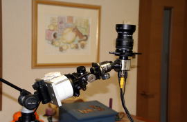CD-1に微動雲台、自由雲台、スライドフィルターアダプター、CCDビデオカメラを接続した状態。