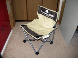 スポーツ用品店で沢山ある簡易チェアーの中で、一番座り心地が良かった。 少し高価だったが・・・。