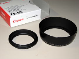 フードとレンズ接続のために中間リング(フードアダプターリング 62-L)が付属する。