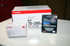 遂にEF-Lレンズを買った。 リング式三脚座と保護フィルターを合わせて購入した。